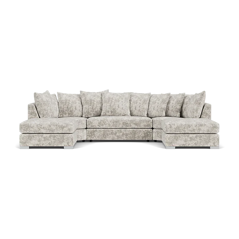 With its plush scatterback cushions, glorious platinum tone, and flexible layout options, the Bishop Scatterback U-Shape Sofa makes a distinguished addition to any home. It marries comfort with adaptable design — the perfect choice for families, couples, or entertaining guests in style.