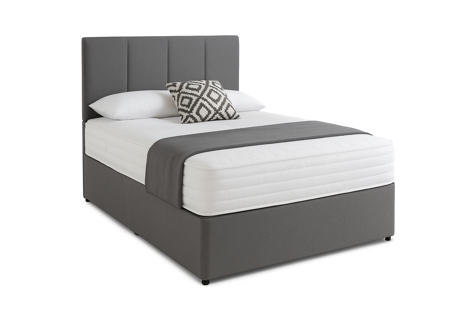 Grey Divan Bed with Mattress | Upholstered Panel Headboard | UK Sizes