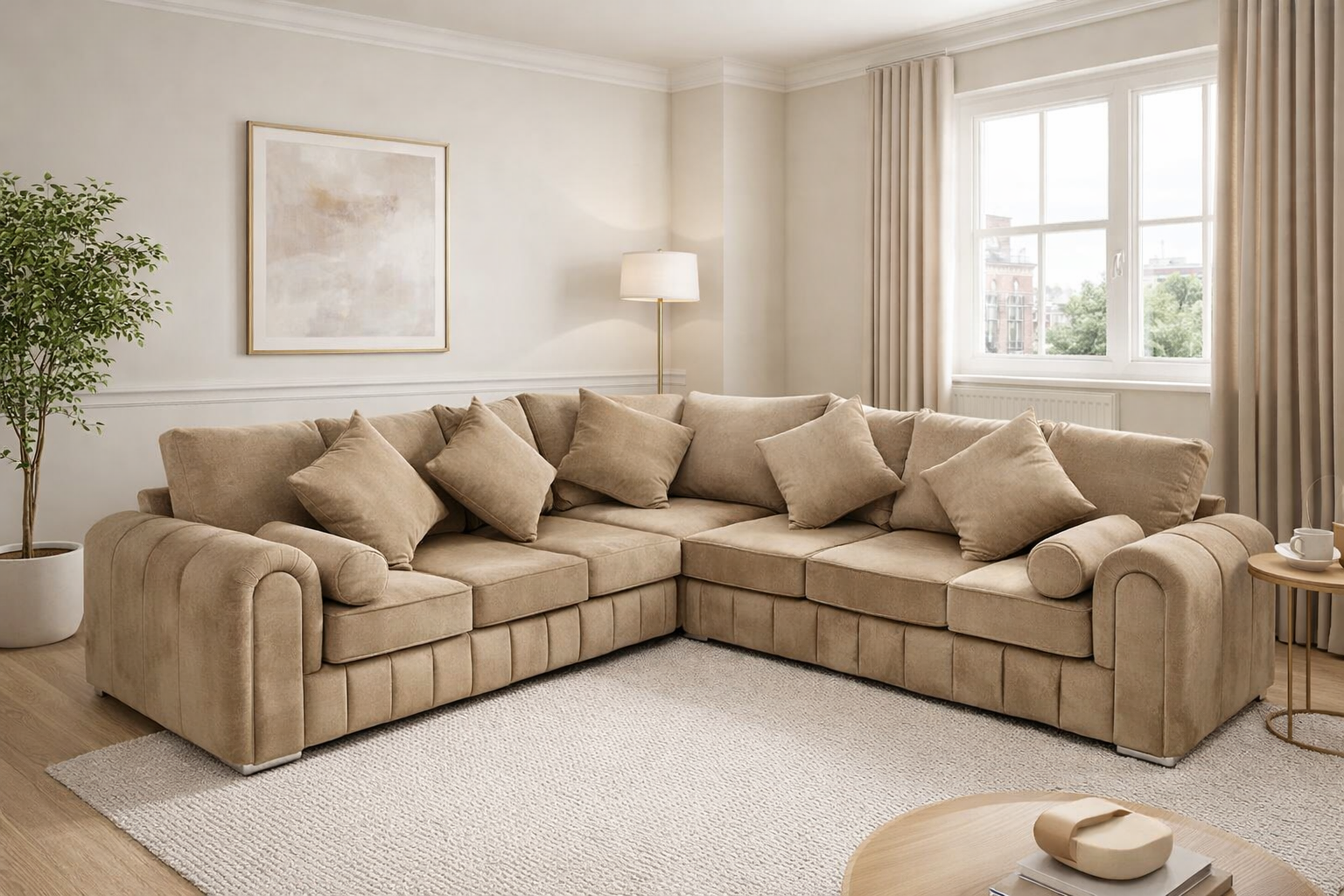 Transform your living space with the Lilly Corner Sofa 7 Seater, designed for modern UK homes that value both comfort and style. This L-shaped sofa features a spacious 3+3+1 configuration – three seats on each side with a cozy corner seat connecting them – making it perfect for family gatherings, movie nights, or entertaining guests.