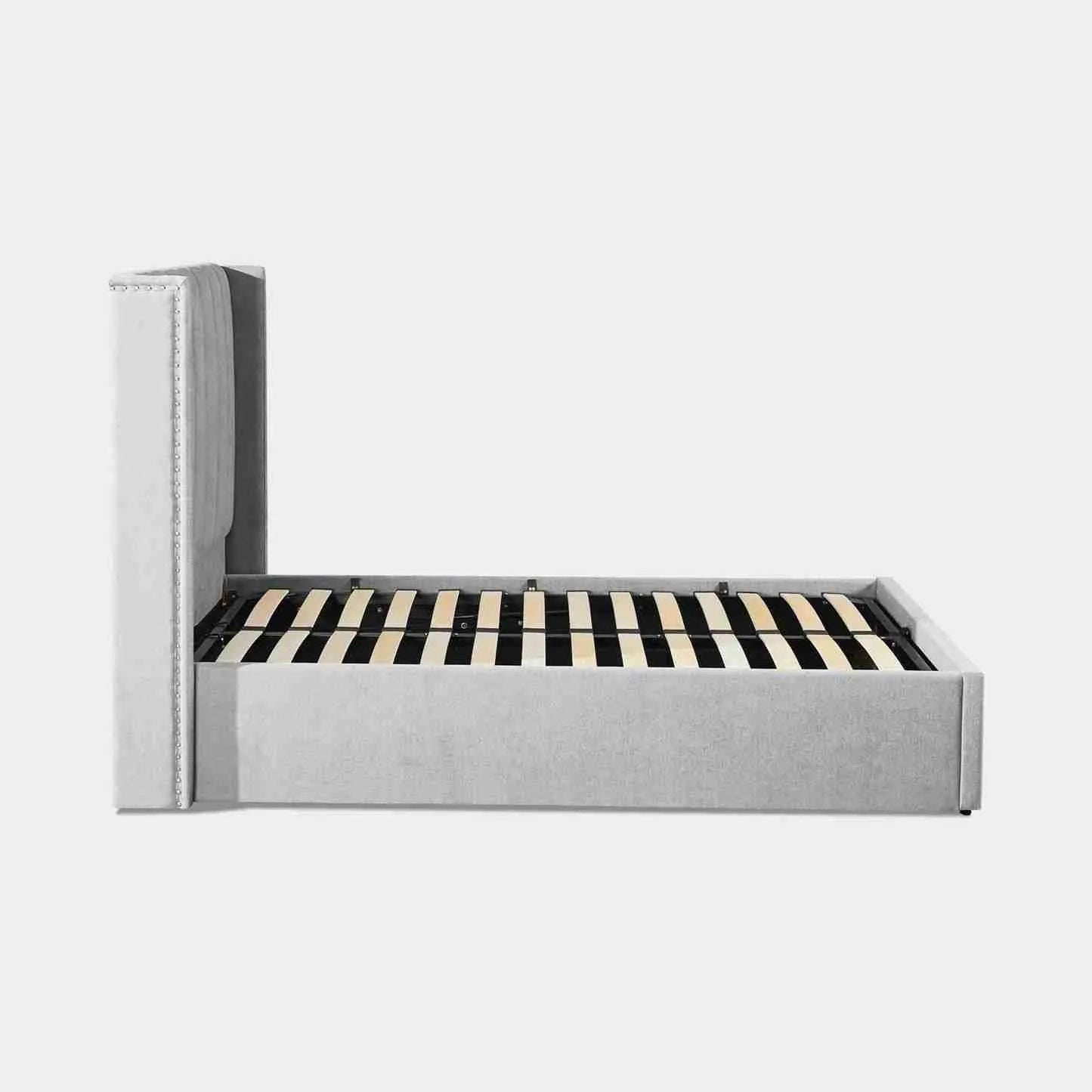 Polaris Silver Double Ottoman Storage Bed Frame – Recycled Velvet with High Wing Headboard