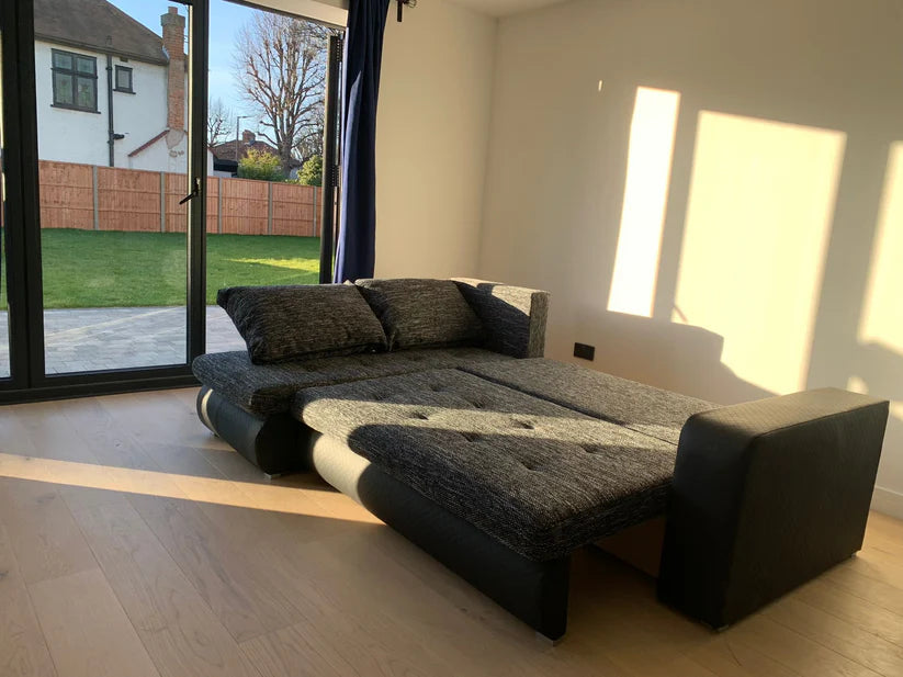 The Berlin Universal Corner Sofa Bed with Storage in classic black is a smart, modern solution for homes where style, comfort, and space efficiency matter most. Designed to adapt effortlessly to your room layout, this versatile corner sofabed features a reversible chaise, allowing you to set it up as left-facing or right-facing to suit your living space perfectly.
