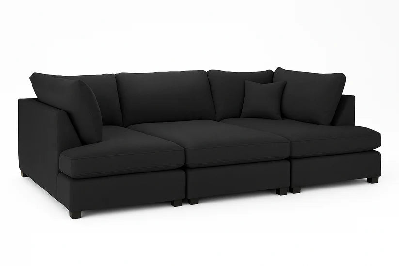 Carnaby Cinema Black U-Shape Corner Sofa – Large Linen Fabric Sofa with Footstool | UK