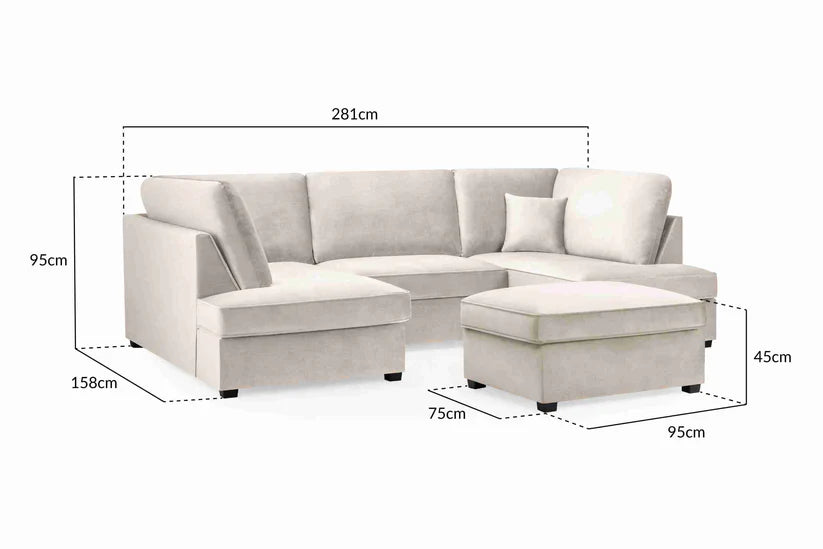 Carnaby Cinema U-Shape Sofa – Plush Beige Velvet Corner Sofa with Footstool | UK