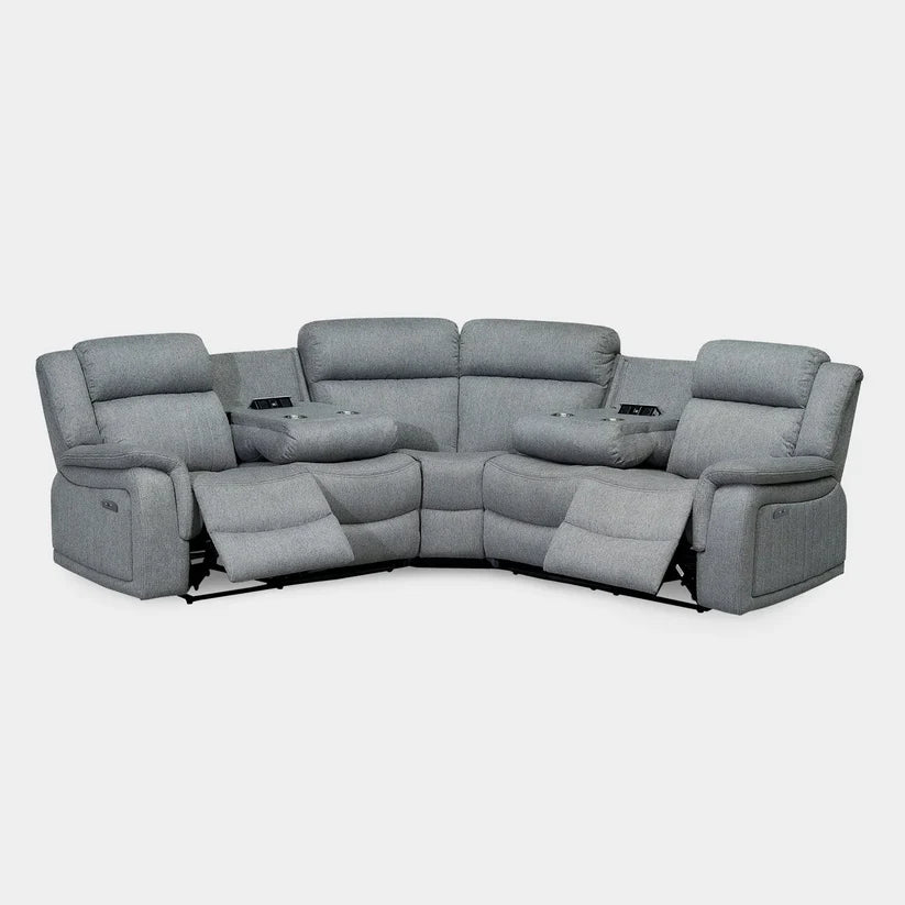 Linden Electric Recliner Grey Large Corner Sofa – Luxury Fabric Reclining Sofa for UK Homes